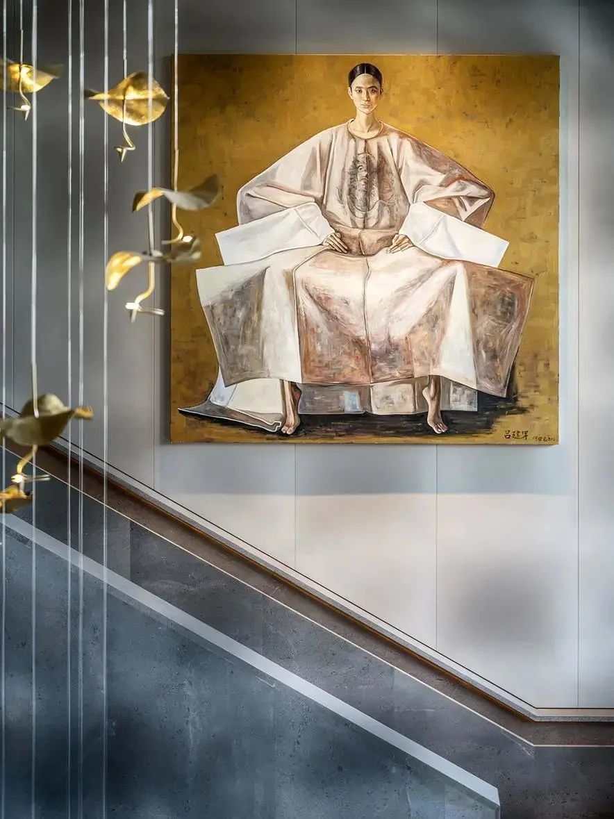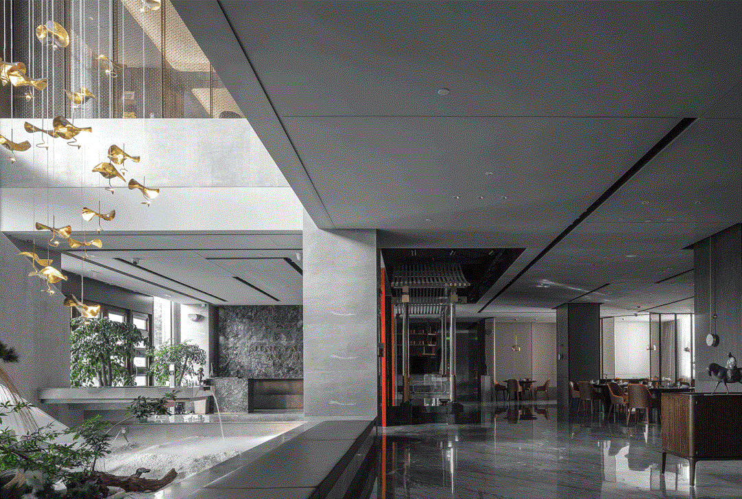 在方案設計之初,設計師希望通過現代設(shè)計(jì)手法將東方情的(de)世界觀融入整體空間內,詮(quán)釋中國傳統智慧與生活美學。大堂背後正對就餐區的(de)區域設計師希望通過中國傳統古建鬥拱現代手法的(de)表達在此設置一處戲樓,時空穿越,舞台上撫琴歌唱著的仿佛是從五代時期韓熙載夜宴上走出的曼妙女(nǚ)子,她輕輕吟唱著傳(chuán)世今生,在京宴一一上演。