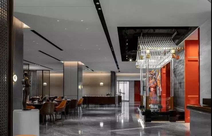 一步(bù)一景,一(yī)眼一畫,隨著動線從大堂進入主餐廳,中國紅在餐廳暈染開來,點綴鑲嵌於門上,掛畫間,飾品處,在(zài)整體暖高級灰的(de)主色調下鋪以純正的京(jīng)紅反而映襯出鬧中取靜的東(dōng)方之魂。