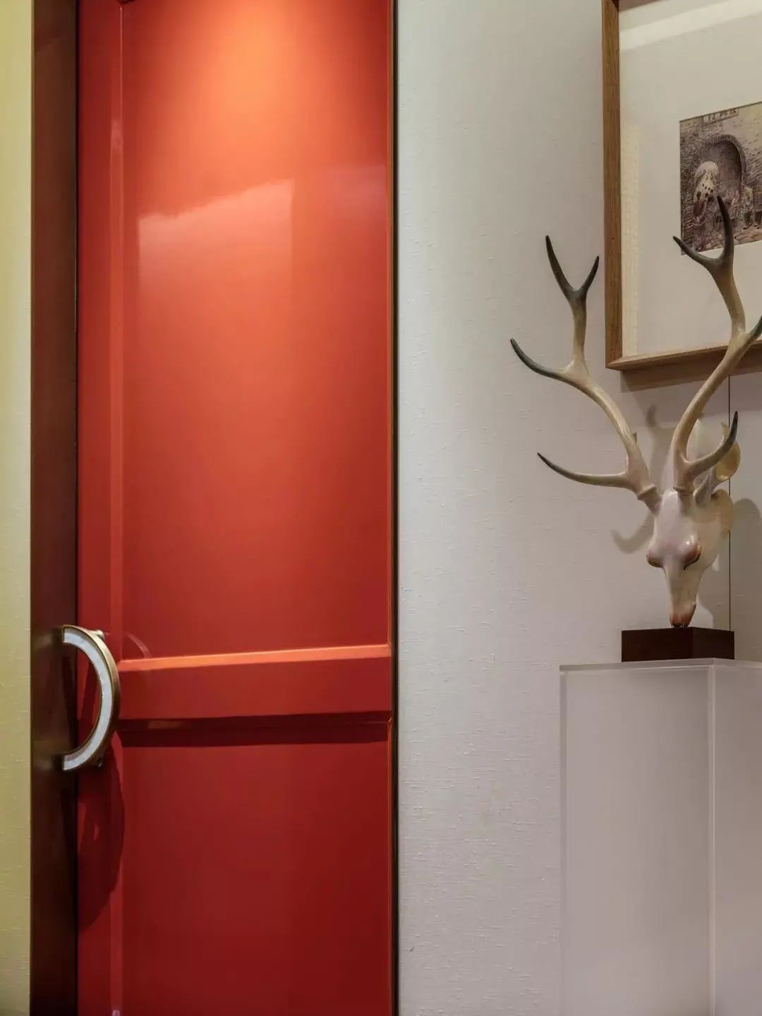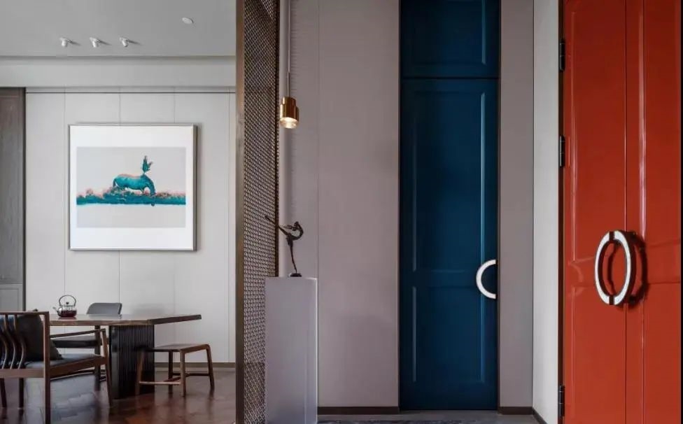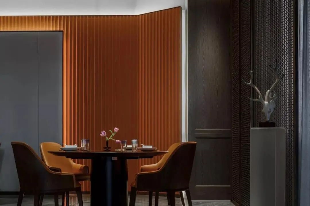 不同的(de)空間其形式與(yǔ)意蘊就會有所(suǒ)不同,來到走廊公區,京紅(hóng)色與明黃色的點綴在整個空間中尤為亮眼,驚豔了來此就餐的客人,並感受著帝都的文化內涵。餐廳的包間區主要分布於二(èr)層,設計師希望(wàng)為客(kè)人營造安靜舒(shū)適的就餐私密環境。既通透又私密的金屬隔斷設計手法(fǎ)將(jiāng)兩處包(bāo)間劃分兩(liǎng)側,可分可合的滿足不(bú)同的宴會需求,遮擋後可做(zuò)單獨包間使用,敞開又可做大包間使用,原(yuán)木色櫃體與白淨的牆麵將空(kōng)間定格為(wéi)靜(jìng)與動(dòng)的氛圍感受,牆麵搭(dā)配冷暖(nuǎn)跳色加(jiā)以裝(zhuāng)飾,氣韻中和,寧靜致遠。