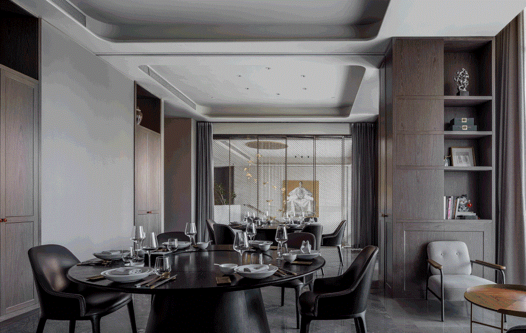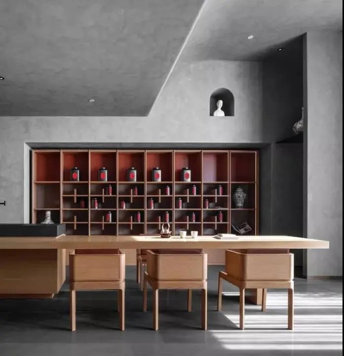 進餐之後意猶未盡來到茶室與酒吧區,一改傳統古典(diǎn)的韻味(wèi),設計師將現代設計手法在空間中表現的淋漓盡致,大麵積高級水泥灰(huī)色在空間(jiān)中鋪(pù)開,原木家具的(de)搭配為來此的客人以溫馨之感,貫穿整個餐廳的京(jīng)紅色點綴於此,呼應主題展現(xiàn)驚豔之處。