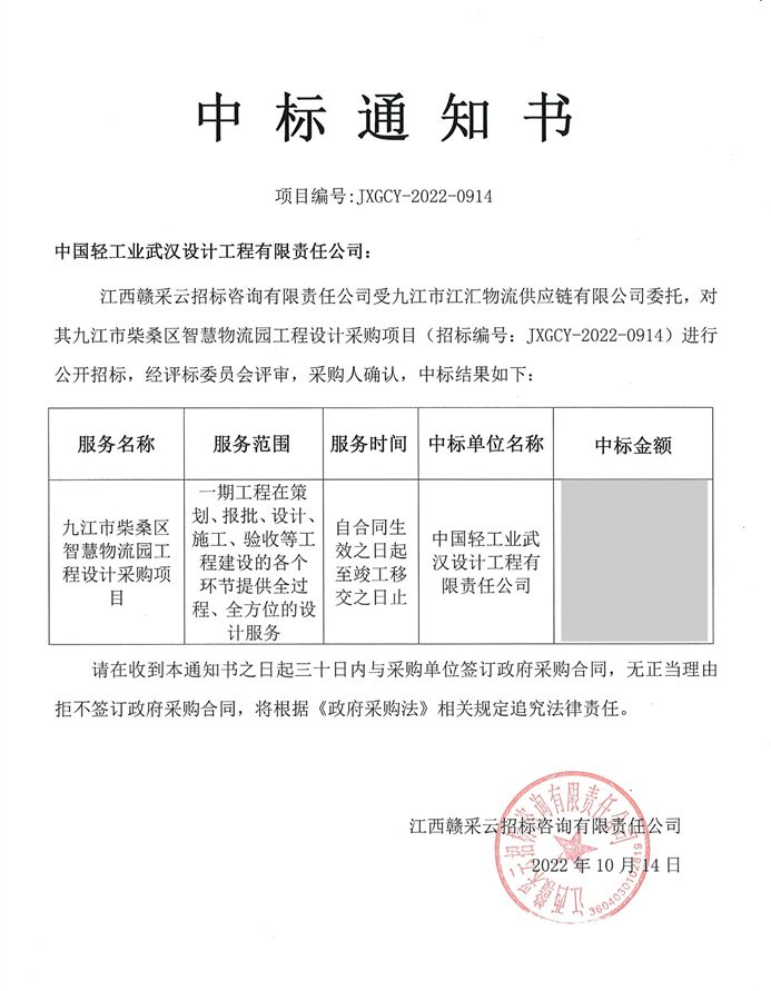 ·中標九江市柴桑區智慧物流園工程設計項(xiàng)目