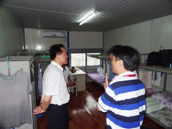 公司領導們(men)每到一處,都查看(kàn)了施工(gōng)進展和現場管理的情況(kuàng),與現場員工(gōng)親切座談,詢問了解大家的工作、生活(huó)情況,對他們所做的工作和良好的精神狀態予(yǔ)以了充分肯定,並送上了毛巾、防蚊液、洗浴露等防暑降溫用品,在炎炎夏日裏給辛苦工作的員工送上一份清涼(liáng),也把公司對一線員工的關心和(hé)愛(ài)護送到他們的心坎上(shàng)。同時領導們鼓勵大家要繼(jì)續發揚不畏艱苦、連續作戰(zhàn)的精神,把工作做好,反複強調要重視(shì)防範風險、注意生產安全。