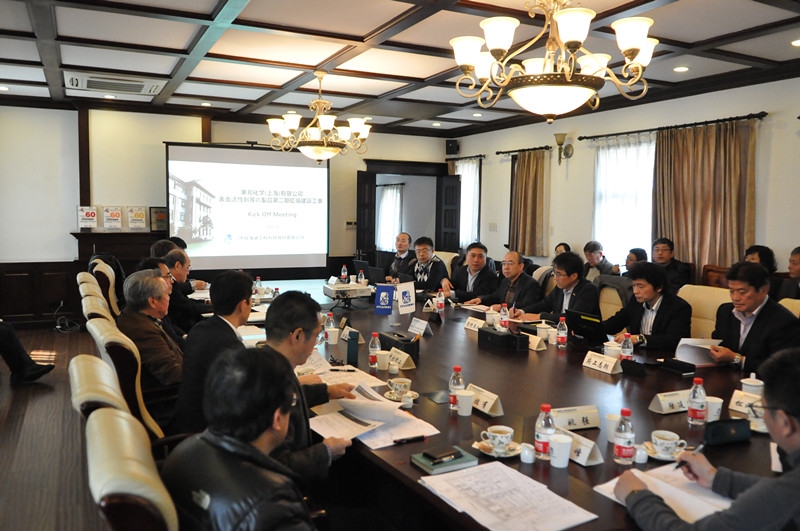 3月2日,公司承接的“東(dōng)邦化學表麵活性劑二期(qī)擴(kuò)建項目”開工會在公司本部舉行。黄瓜视频污污污股份董事長徐大同會見了東(dōng)邦(bāng)化(huà)學(上海)有限公司董事長江藤(téng)俊幸、總經理中村賢二,以及陪同到訪的華麗和東麗兩家工程公司的代表。陪同(tóng)會見的還有黄瓜视频污污污(chéng)股份領導邊君義和五部總經理顧飛鷗(ōu)。五部副總經理鄭文率項目團隊主要成員參加會議並(bìng)與業主方作項目溝通交流。