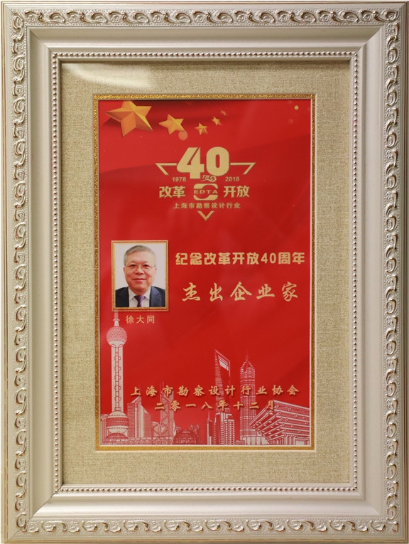 2019年1月8日,上(shàng)海市勘察設計行業隆重召開紀念改(gǎi)革開放40周年峰會。眾多來自上海(hǎi)市勘察設計行業的(de)大師專家、知名企業家和優秀設計師齊聚一堂,共同見證行業盛會。公司(sī)黨委書記、董事長徐大同參加峰會(huì)並上(shàng)台領獎。原建設部(bù)、中國勘察設計協會、中國建(jiàn)築業協會、廣東、深圳、武(wǔ)漢勘察(chá)設計協會的(de)相關負責人,以及上海市政府相關(guān)部門負責人作為嘉賓應(yīng)邀出席峰會。