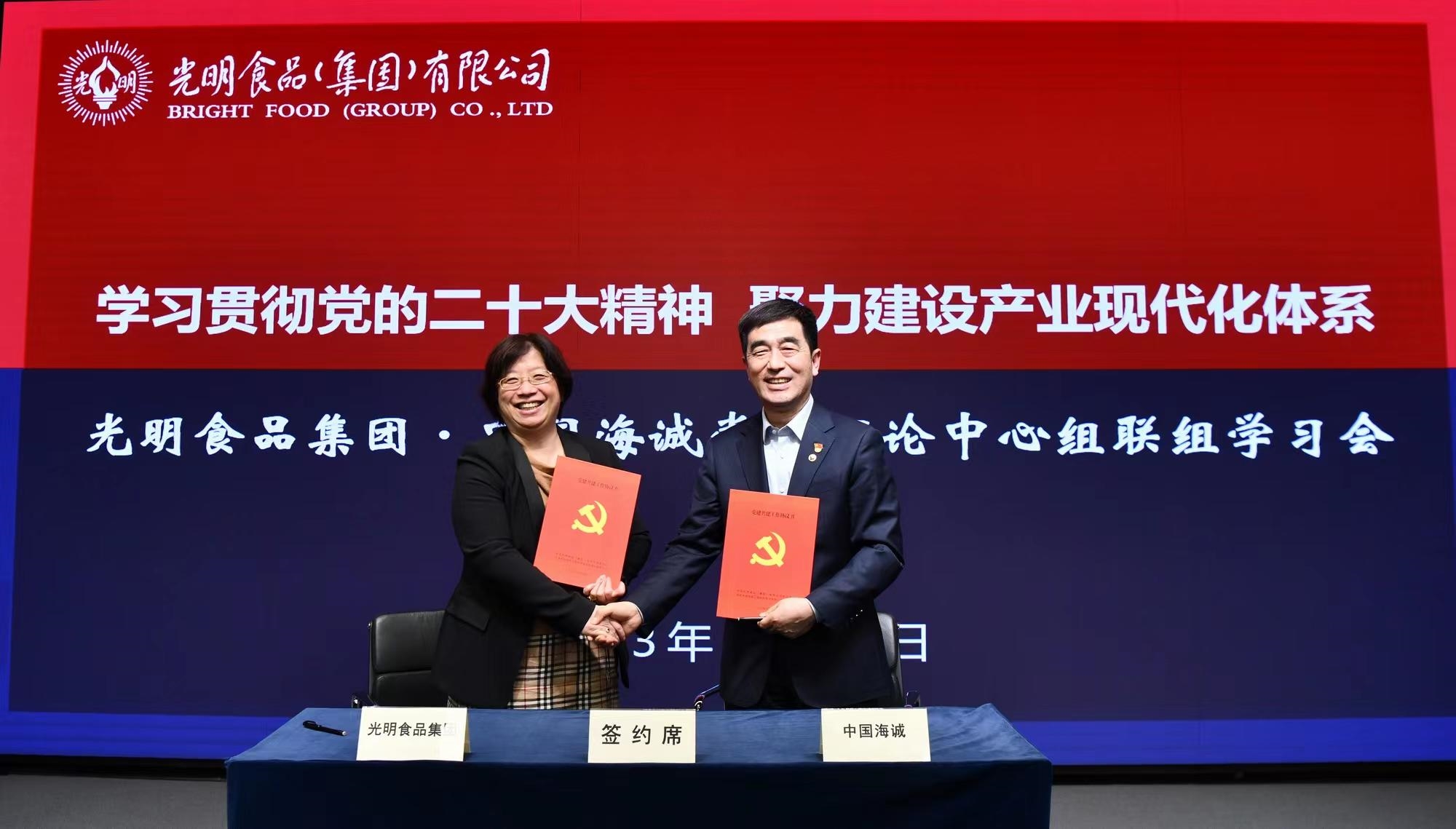 會(huì)上還舉行(háng)了黨建共建(jiàn)合作協議簽約儀式。中國黄瓜视频污污污黨委副書記、紀委書記李義民和光明食品集團黨委副書記朱晨紅代表雙方簽訂黨建共建協議。