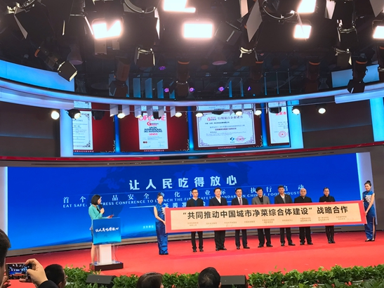 此次發布會正式啟動(dòng)“食品淨化保食安(ān)進萬家計劃”,並簽訂(dìng)“共同推(tuī)動中國城市淨菜綜合體建設”以(yǐ)及“共同推動首個食品安全淨化行業標準行業推廣應用”戰(zhàn)略合作協議。為進一步落實《果蔬淨化清洗機》行(háng)業(yè)標準全麵落地,在家庭、群(qún)體性就餐、淨菜加工、農產品加工等場所牢牢建起食品(pǐn)安全最後一道防線,真正讓老(lǎo)百姓放心吃好每一餐(cān)。來自國務院(yuàn)發展研究中心、人民網(wǎng)輿情監(jiān)測室、中食集團、中食淨化、國(guó)家食品藥品監督管理總局、中國疾病預(yù)防控製中心營養與(yǔ)健(jiàn)康所、中關村(cūn)豐台科技園的領導代(dài)表共同啟動了(le)“食品淨化保食安(ān)進(jìn)萬(wàn)家計劃”。