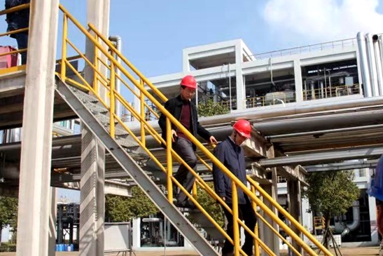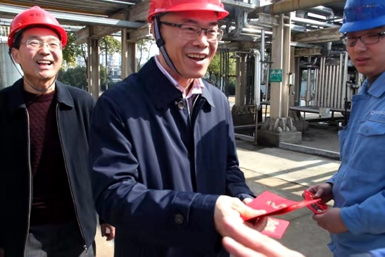 張萬順深入中(zhōng)控室、配電室、生(shēng)產車間、環(huán)氧(yǎng)卸車平台、汙水處理站。每到一處(chù),他都與員工一一親切握手,“同誌們辛苦了”,“給(gěi)大(dà)家拜年了”,一聲聲問候,一句句祝福,溫暖了堅守一線的每一位員工。