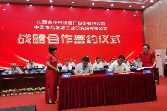 8月8日,食品院(yuàn)受邀與山西杏花村汾酒集團(tuán)第一屆科(kē)技大會(huì),食品院總經理董(dǒng)建輝、原副院長張(zhāng)五九、副院長宋全厚、釀酒(jiǔ)技術研究發展(zhǎn)部主任王德良,中國酒業協會理事長王延才,江南大學校長、中國工程院院士陳堅(jiān),山西(xī)汾酒集團董事長李秋喜等(děng)白酒行業權威人(rén)士和龍頭企業家出席會議。