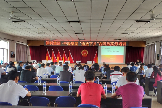 為積極踐行央企社會責任,大力弘揚法(fǎ)治精神,用法治助力(lì)脫貧攻堅,7月10日上午,中輕集團在定點扶貧縣內蒙古赤峰市喀喇(lǎ)沁旗王爺府鎮舉辦“送法下鄉”合同法(fǎ)實務(wù)培訓。中輕集團法律事務部全員到場開展培(péi)訓。王爺府鎮(zhèn)鎮長耿(gěng)利(lì)軍(jun1)主持培訓,鎮黨政班子成員和機關幹部,所屬24個村的第一書記(jì)、黨組織書記、相關工(gōng)作人員等80餘(yú)名村鎮幹部(bù)參加培訓(xùn)。