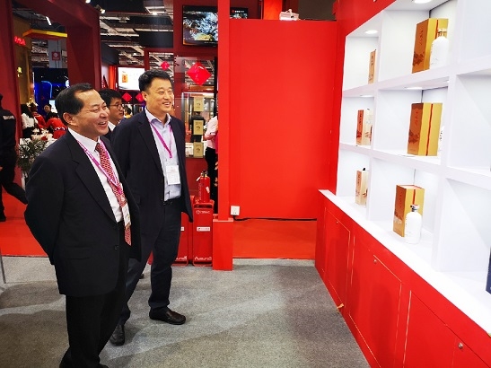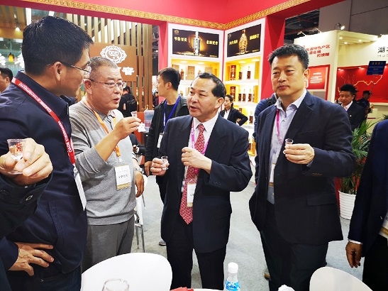 郭建全一行參觀(guān)展會,與食品院有技術合作的五糧液、酒鬼酒、國台酒、釣(diào)魚台酒、秦含章酒、梁大師等(děng)企業負責人深入溝通服務合作。