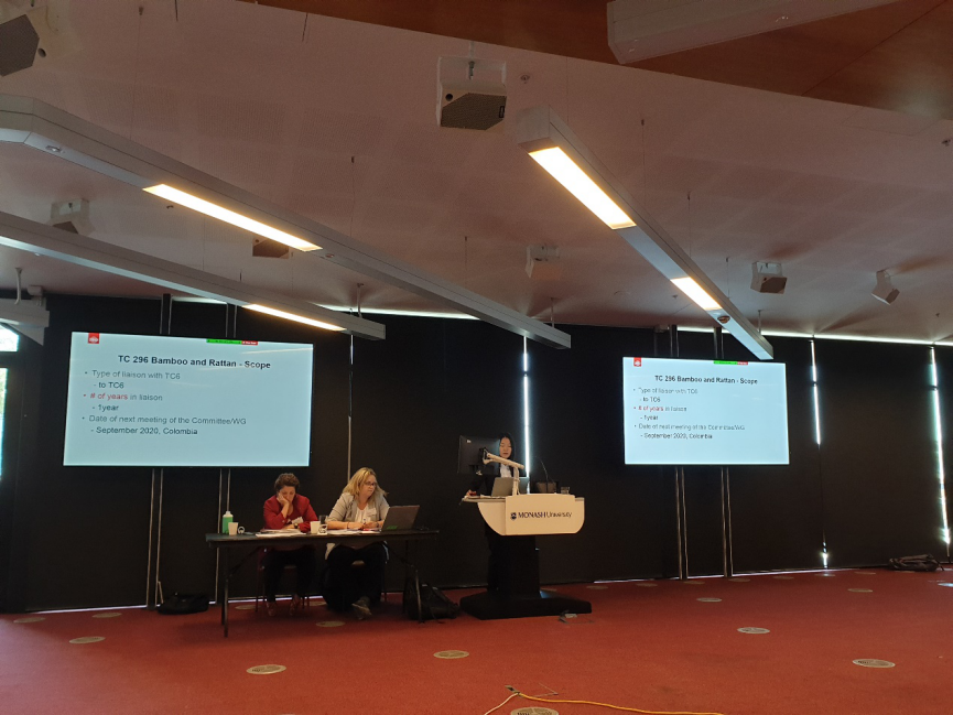 在SO/TC6全體會議上,造紙院黎的非(fēi)作為 “竹和藤技術委員會(TC/296)”的聯絡員,匯報了近一年來TC/296的(de)標準項目動態;造紙院呂衛軍代表(biǎo)中國向各國(guó)專家(jiā)發出邀請(qǐng),歡迎大家參加2021年由中國主辦造紙院承辦的ISO/TC6全體年會。