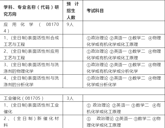 2020年預計招收全日(rì)製碩士研究生12名,應用化學專業9人(全日製)、工業催(cuī)化專業3人(全日製)。