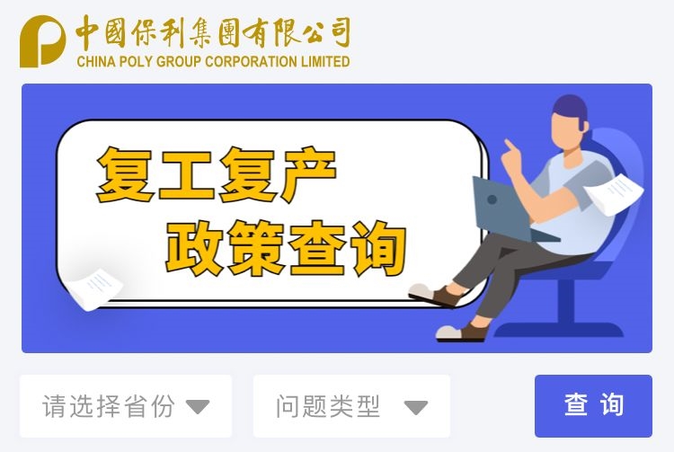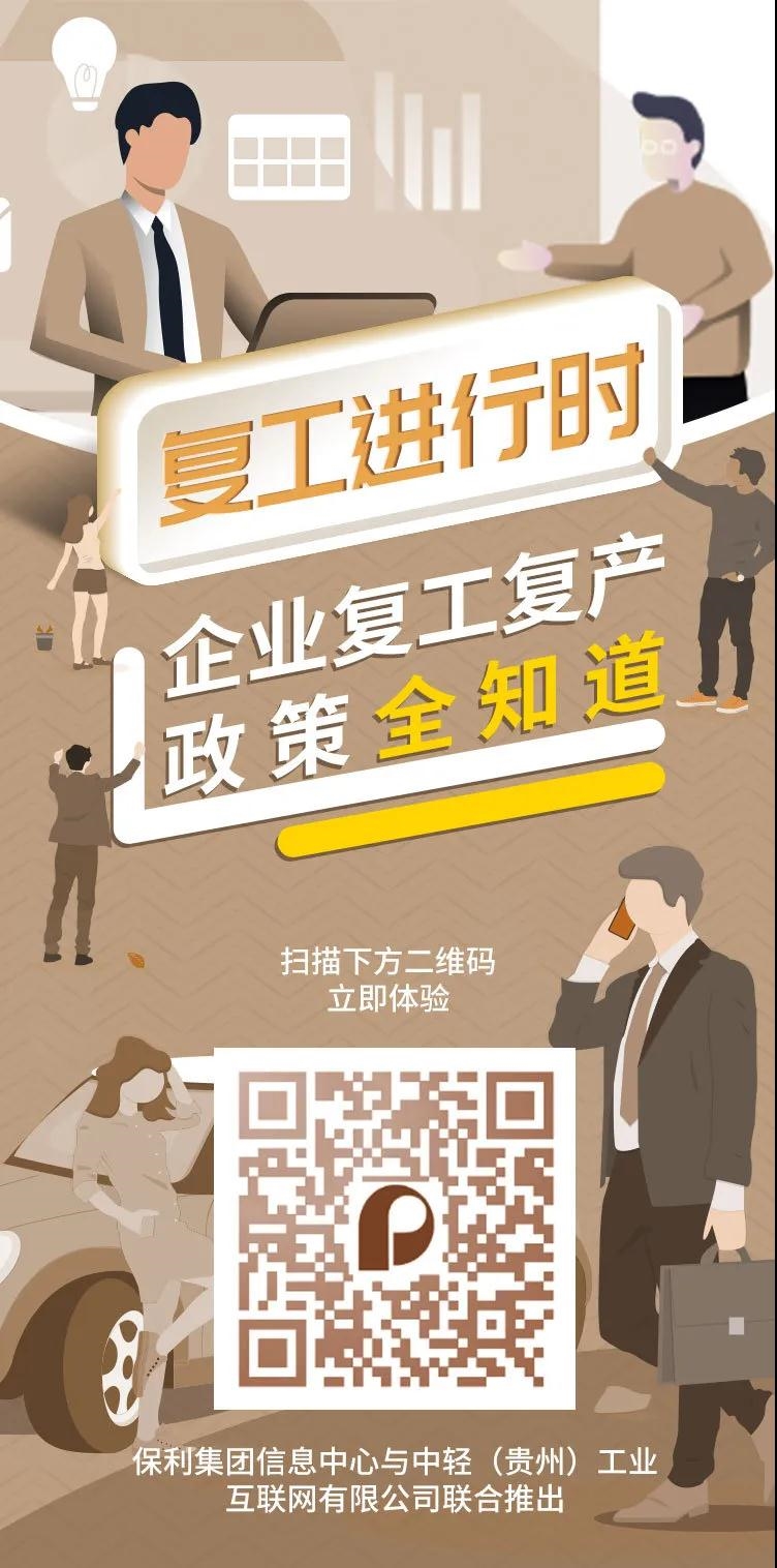保利集團深(shēn)入貫徹落實關於統籌推進(jìn)疫情防控和經濟社會發展工作部署會議(yì)精(jīng)神,在穩抓疫情防控、全力推進集團內部複工複(fù)產的同時,充分發揮央企主力軍(jun1)的作用,由保(bǎo)利集團信息中心與中輕(貴州(zhōu))工業互聯網有限公司聯合推出複工複產政策查詢服務,為各行業企業(yè)、群眾全麵了解疫情防控、複工複產政策提供信息支持。