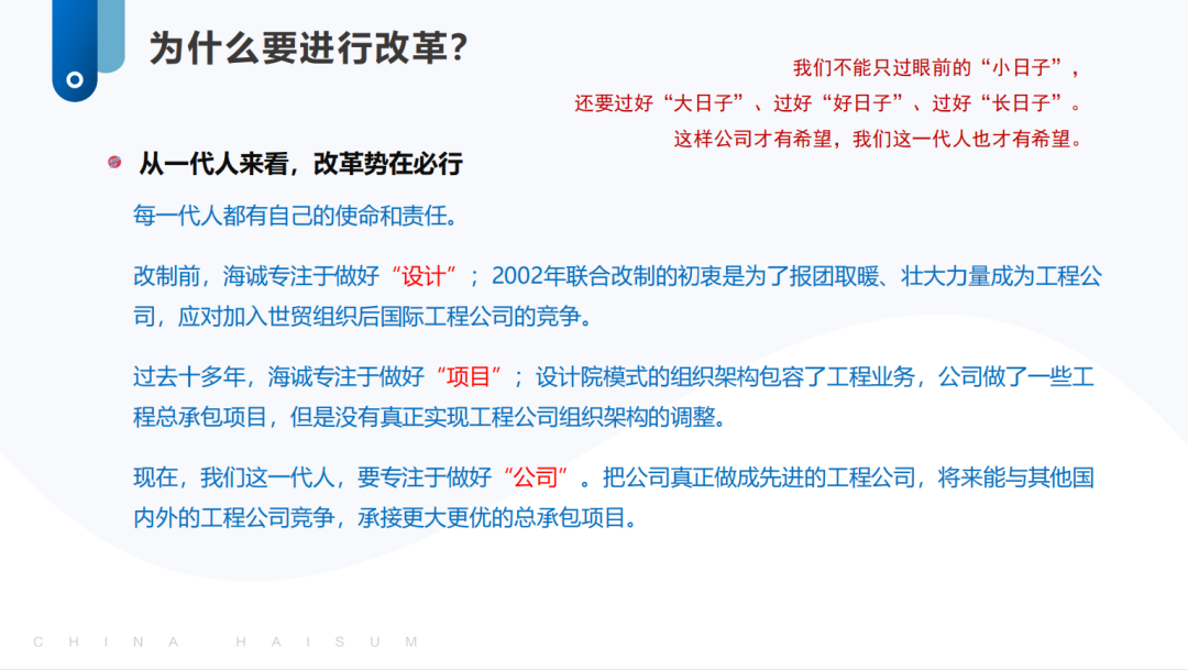 隨後,趙國昂(áng)以《改革助力 創新賦能 勠力同心 推動黄瓜视频污污污股份“十四五”高質量(liàng)發展》為題作了主旨發言。他指出(chū),實施(shī)組織機構改革是黄瓜视频污污污股份應對當前(qián)發展環(huán)境和破(pò)解(jiě)發展困境的必然選(xuǎn)擇(zé),也是落實“十(shí)四五”規(guī)劃目標的重要(yào)保障。通過組織變(biàn)革和流程再造,海(hǎi)誠股份總部將作為整個股(gǔ)份公司的戰略管理中(zhōng)心、運營(yíng)管理中心、專業化管理中心、數字化驅動中心、資(zī)本運作中心(xīn);本部將聚(jù)焦細分領域的工程業務,全力做好生(shēng)產運營工作。逐步(bù)優化其他各子公司(sī)管理(lǐ)體(tǐ)係,最終實現黄瓜视频污污污股份業務經營管理一體化。在(zài)推(tuī)進組(zǔ)織機構改革的同時,黄瓜视频污污污股份還(hái)將(jiāng)堅持科(kē)技引領,推動數字(zì)化轉(zhuǎn)型,創(chuàng)新賦能高質量發展,為保利中輕實(shí)現保利集團對其(qí)定位目標作出新貢獻。