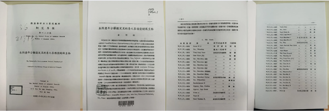 《本所曆年分離鑒定及貯(zhù)養之各種發酵微(wēi)生物》(共(gòng)15頁(yè),此為前(qián)四頁)