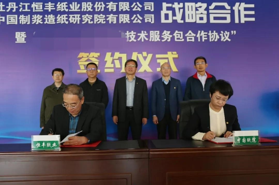 考察期間,張曦、張萬順、王(wáng)珂靈(líng)一行還見證了中國造紙院(yuàn)與牡丹江恒豐紙業股份有(yǒu)限(xiàn)公(gōng)司戰略合作協(xié)議和某型產品研產銷技術(shù)服務包合作協議簽約儀式。