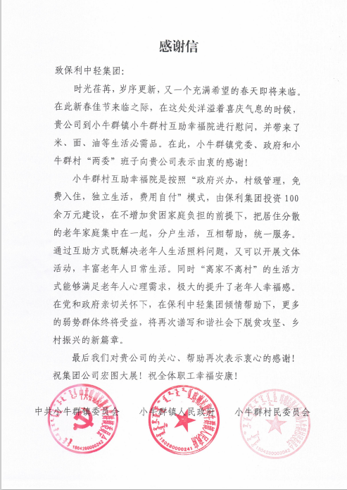 2021年(nián),保利中(zhōng)輕認真(zhēn)貫徹落實中央和保(bǎo)利集團定點幫扶工作(zuò)要求,堅持“產業優先,特色發展”,對現有產業(yè)、教育、養老、黨建、就業等工作逐(zhú)項優化調整,逐步實現由支持脫貧攻堅向全麵推進鄉(xiāng)村振興平穩過渡。