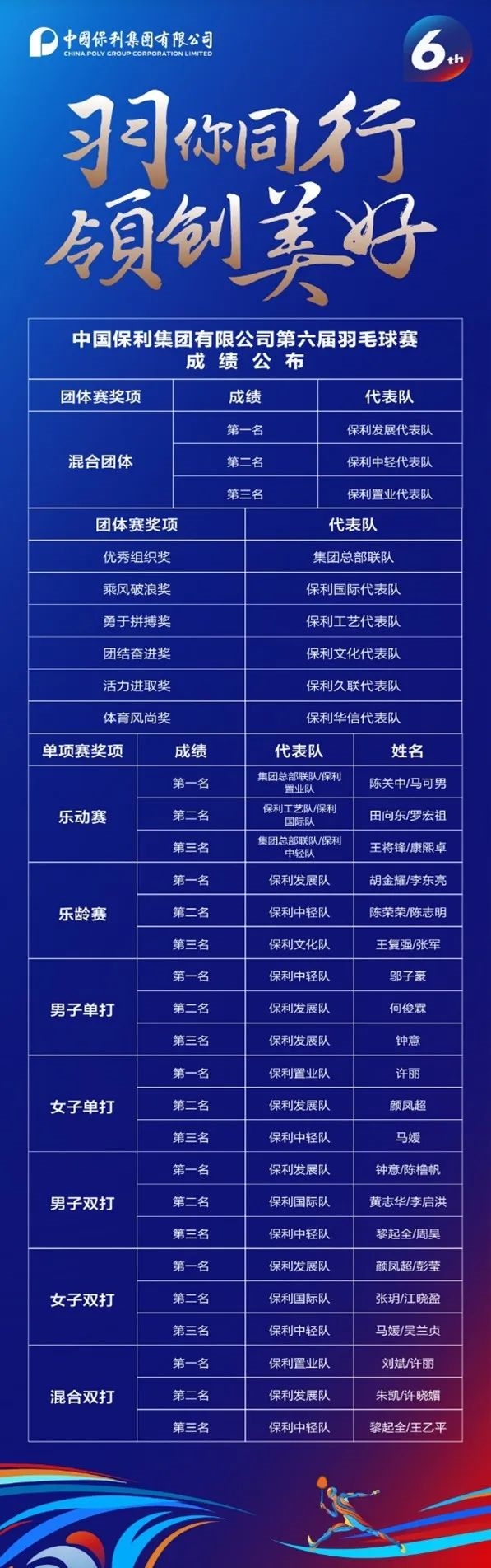 喜訊!保利中輕代表隊在保利集團第六屆羽毛球比賽中斬獲佳(jiā)績!