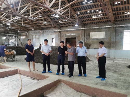 調研期間,王珂靈一行參觀了釀酒車間、製(zhì)曲車間(jiān)、酒庫等。