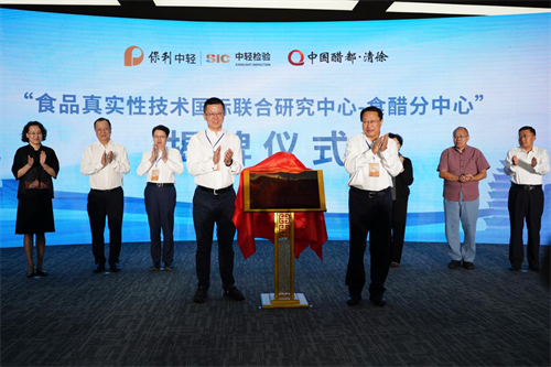 在與會領導和嘉賓共同見證下,太原市人大常委會副主任、清徐縣委書記王劍峰與中輕檢驗總(zǒng)經理趙紅峰共同為“食品真實(shí)性(FA)技術國際聯合研究中心——食醋分中心”揭牌。
