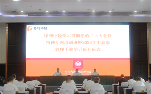 保利集(jí)團總經理助理(lǐ),保利中輕黨委書記、董事長安勝傑(jié)作開班講話,中國(guó)大連高級(jí)經(jīng)理學院副院長王大剛致歡迎辭,保利中輕(qīng)紀委書記肖(xiāo)金龍主(zhǔ)持開(kāi)班式。