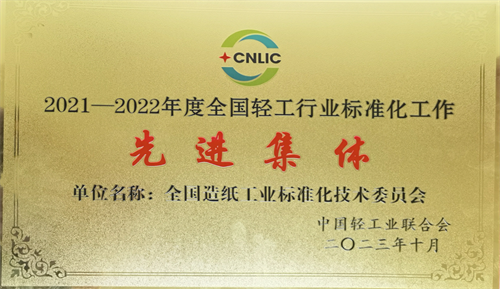 中國製漿(jiāng)造紙研究院(yuàn)榮獲“2021-2022年度全國輕工行業標準化工作先(xiān)進單位”稱號;作為秘書處承擔單位運營的全國造紙工(gōng)業(yè)標準化委員會榮獲“2021—2022年度全國輕(qīng)工行業標準化工作先進集體”稱號。