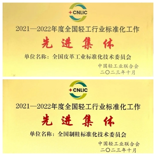 中國皮革製鞋研究院作為秘書處承擔單位運營的全國皮革工業標準化技術委員會和全國製鞋(xié)標準化技術委員會榮獲“2021-2022年度全國輕工行業標準化工(gōng)作先進集體(tǐ)”稱號。
