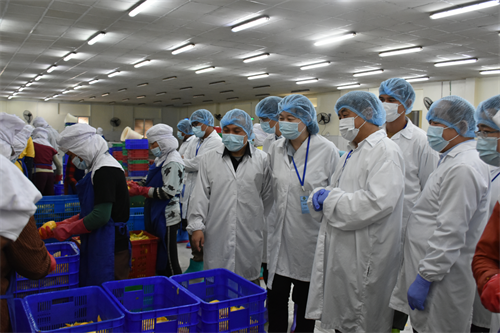 此外,曹春昱一行還赴(fù)金(jīn)邊本地Kirirom食品加工廠和KHMER BEVERAGES啤酒公(gōng)司進行(háng)調研考(kǎo)察,參觀了芒果幹生產車間、啤酒(jiǔ)生產線及檢測實驗(yàn)室,與企業相關負責人進行深入交流。雙方就(jiù)芒果製品深加工,特別是在芒果飲料、芒果酵素等新產品開(kāi)發和技術交流方麵(miàn)合(hé)作,達成初步合作意向(xiàng)。