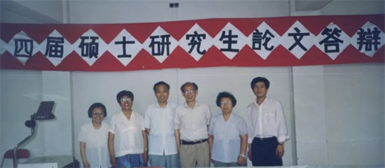 朱聖光作為碩士研究生學位評定委員會委員(yuán),在1994屆碩士研究生論文答辯會合(hé)影(左一)