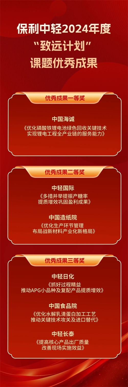 會議還表(biǎo)彰了保(bǎo)利中輕2024年度先進集體(tǐ)和先進生產工作者,2024年度“致遠計劃”優秀課題成果。