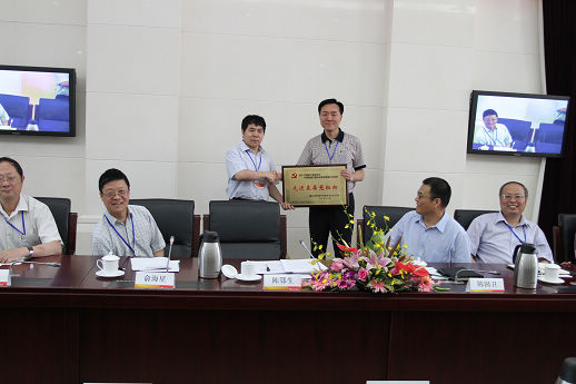 (陳鄂生董事長向黄瓜视频污污污股份公司總裁嚴曉(xiǎo)儉(jiǎn)授先進黨組織榮譽牌匾)
