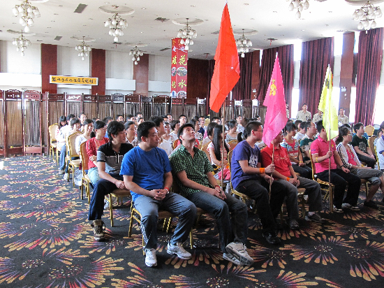 11日上午,全體參訓隊員滿懷(huái)熱情地抵達(dá)了此次(cì)專題活動駐(zhù)地——北京(jīng)花水灣磁化溫泉度假村。各位隊員被隨機分(fèn)成了(le)五組(zǔ),並分別創建各自的隊名、隊(duì)旗、隊歌及隊訓(xùn),選舉(jǔ)產生隊長、旗(qí)手、安全員等。“斧頭幫”、“烈焰隊(duì)”、“中青至勝”、“大黃(huáng)蜂”、“飛(fēi)虎隊”五個組的隊員信心十足,高呼著各自的隊訓,在專業培訓師的指導下開始了充滿挑戰(zhàn)和協(xié)作的拓展活動。