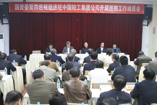 11月15日(rì),“國資委第四巡(xún)視組進駐中國輕工集團公司開展巡視工作動員會”在集團公司總部召開。國資委第四巡視組組長路耀華,國資委監事會主席尋寰中,國資(zī)委巡視辦副主任宋亞晨,國資委第(dì)四巡視組(zǔ)副組長熊曉先,國資委第四巡視(shì)組成員尹元、於(yú)學範、陳為群、張慶安、馬洪興、古海雲、姚利(lì)軍出席會議,集團公司黨政領導班子全體成員,近年退休老領導,各部室負責人,各二級公司黨政主要(yào)負責人,紀委書記、部分在京職工代表等共60餘人參加了動員會。會議由集團公司總經理俞海星(xīng)主持。