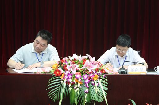集團公司總經理俞海星與食品發(fā)酵(jiào)院院長蔡木易簽訂任務合同書