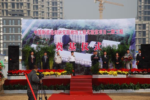 2012年10月12日,俞海星總(zǒng)經理出席了中國(guó)製漿造紙研究院廊坊工程實驗室項目二期工程開工奠基儀式。俞總在致辭中對(duì)造紙院廊坊(fāng)項目建設工作給予了充分肯定,對長期以來關心和(hé)支持中輕(qīng)集團發展,特別是關(guān)心(xīn)和支(zhī)持該項(xiàng)目籌備實施的廊坊(fāng)市(shì)各級領導和部門表示了感謝,並向為工程開工付出辛勤勞動的一線幹部(bù)職工表示(shì)了(le)慰問。他希望項(xiàng)目承建單位(wèi)要切實增(zēng)強緊迫感和責任感,嚴格工程管理,確保安全、質量和進度,力爭把(bǎ)項(xiàng)目建(jiàn)設成為廊坊科技穀(gǔ)的標誌性、樣板性工程。中國製漿造紙研究(jiū)院院長曹春昱(yù)和廊坊(fāng)科技(jì)穀有關領導也分別(bié)在儀式上致(zhì)辭。