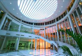 基地麵積(jī)200000㎡,建築麵積14450㎡,綠化麵積140000㎡,樓(lóu)層平均高度4.8米,一類建築,耐火等(děng)級為一級。環境設計(jì)十分優雅,有大麵積(jī)內湖(hú)、小品(pǐn)、小(xiǎo)橋流水、曲徑通幽。本工程建築結構(gòu)平麵複雜,融空管機房大廳、辦公交流培(péi)訓、國外專家指導中心、管製專業人員高檔生(shēng)活服務中心等。結構有鋼筋(jīn)砼結構、鋼結構、鋼網架結構、加勁砼(tóng)結(jié)構、鋼管結構等。本工程裝飾標準高,外牆(qiáng)采用了(le)日本進口氟(fú)碳烤漆純鋁板、美國純白玻璃、進口(kǒu)石材等裝飾技法。屋麵局部采用進口鋁鈦鎂屋麵板。內裝飾采用了蜂窩鋁板、進口大理石、不鏽鋼、進口PVC地板、大麵積(jī)防(fáng)靜電活動地板等。本工程配套設施有:變配電中心、鍋爐水泵房、液化氣供(gòng)應(yīng)站、監控中心、汙水處理場(chǎng)等。本工程已獲(huò)得上海市“優質結構獎”、“優質安裝獎”、“金剛獎”,“白玉蘭(lán)獎(jiǎng)”也已由評委驗收。