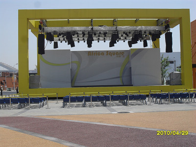 五大洲廣場(chǎng)為上海世博園區露天舞台搭建(jiàn)工程,包括露天(tiān)舞台的輔助用房和露天舞台(tái),可舉辦各國各(gè)民族風情歌舞表演、大型戶外音樂會、演唱會(huì)、街頭演藝活動等。固(gù)定(dìng)舞台,每個250平方(fāng)米,工作區用房麵積180平方米。建(jiàn)築麵積(jī)均為一層,舞台麵積(jī)約為360 m2,最高高度(dù)為10.0米。上部結構形式為鋼結(jié)構構架,為世博園區臨(lín)時建築。